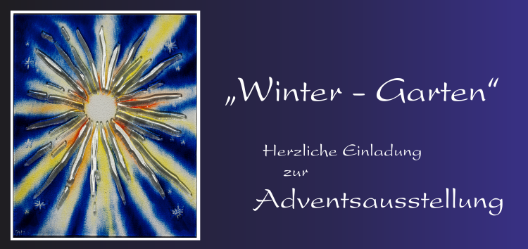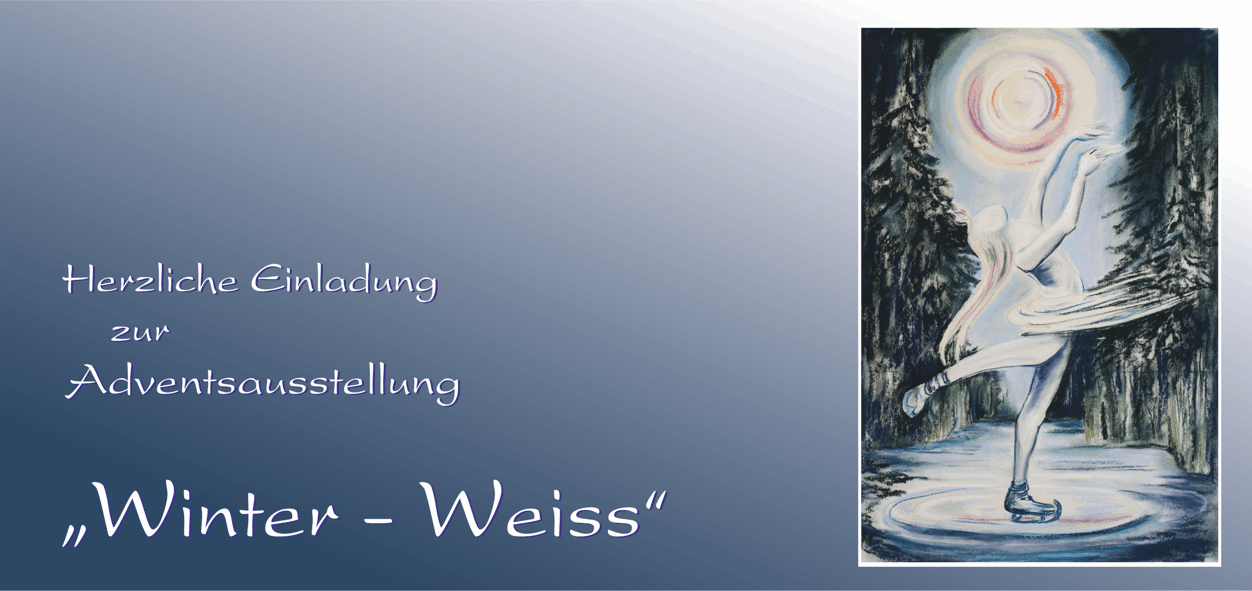 Weihnachtliche Ausstellung zum Thema Winter und der Farbe Weiß mit Glasbildern, Malereien und Grafiken aus meinem Atelier und Fotos der Fotogruppe Blickwinkel.