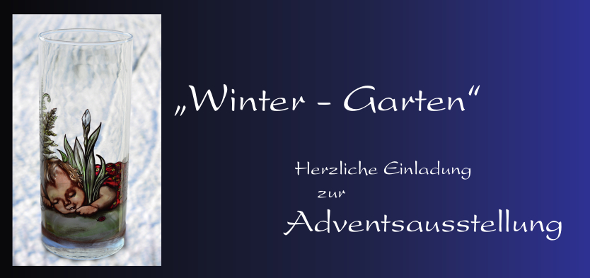 Ab 17 Uhr erstrahlt am 19.11. rund um unser Atelier der "Wintergarten" in weihnachtlichem Sternenglanz. Wie bereits im vergangenen Jahr verlegen wir einen großen Teil unserer Ausstellung ins Freie. Gartenstecker mit Wintermotiven, die auch im veschneiten Garten zur Wirkung kommen, geben der Natur ein freundliches Gesicht, Sterne und Glasobjekte verleihen den kahlen Bäumen und Sträuchern einen neuen Glanz. Und Kerzenlichter, die zwischen den Ästen funkeln, beleben den winterlichen Garten. Um die große Krippe mit den gläsernen Figuren scharen sich Weihnachtsengel und Nikoläuse. Stelen und Spiegel entfalten auch im freien eine Einzigartige Wirkung.