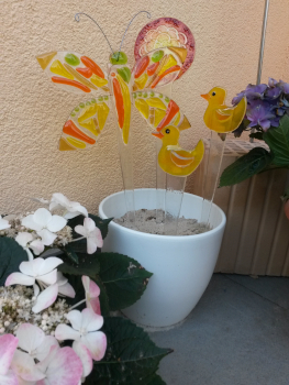 "Der gläserne Garten" war meine erste Ausstellung, in der unser Garten rund um unser Atelier als Ausstellungsfläche einbezogen wurde. Und die Idee - die Glasobjekte im Garten an geeigneten Stellen, verteilt zwischen Natur- und Kulturpflanzen zu platzieren - war goldrichtig. Über den gesamten Ausstellungszeitraum hatten wir Besucher, die entspannt - für einen Moment die neue Normalität vergessend - in unserem Garten verweilten und auf ihrem Entdeckungsrundgang Ideen für ihren Garten sammelten.